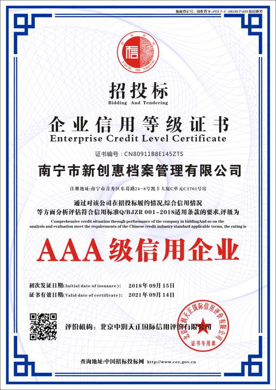 • 招投標企業信用等級證書